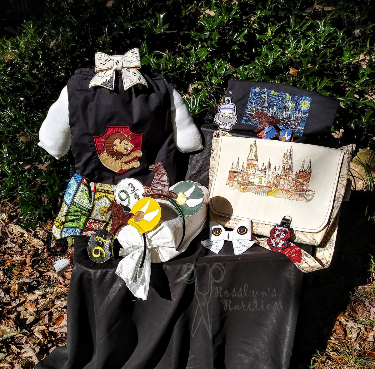 A selection of Wizarding School items we have available. Headbands, Hair Bows, Bags and Key Fobs.