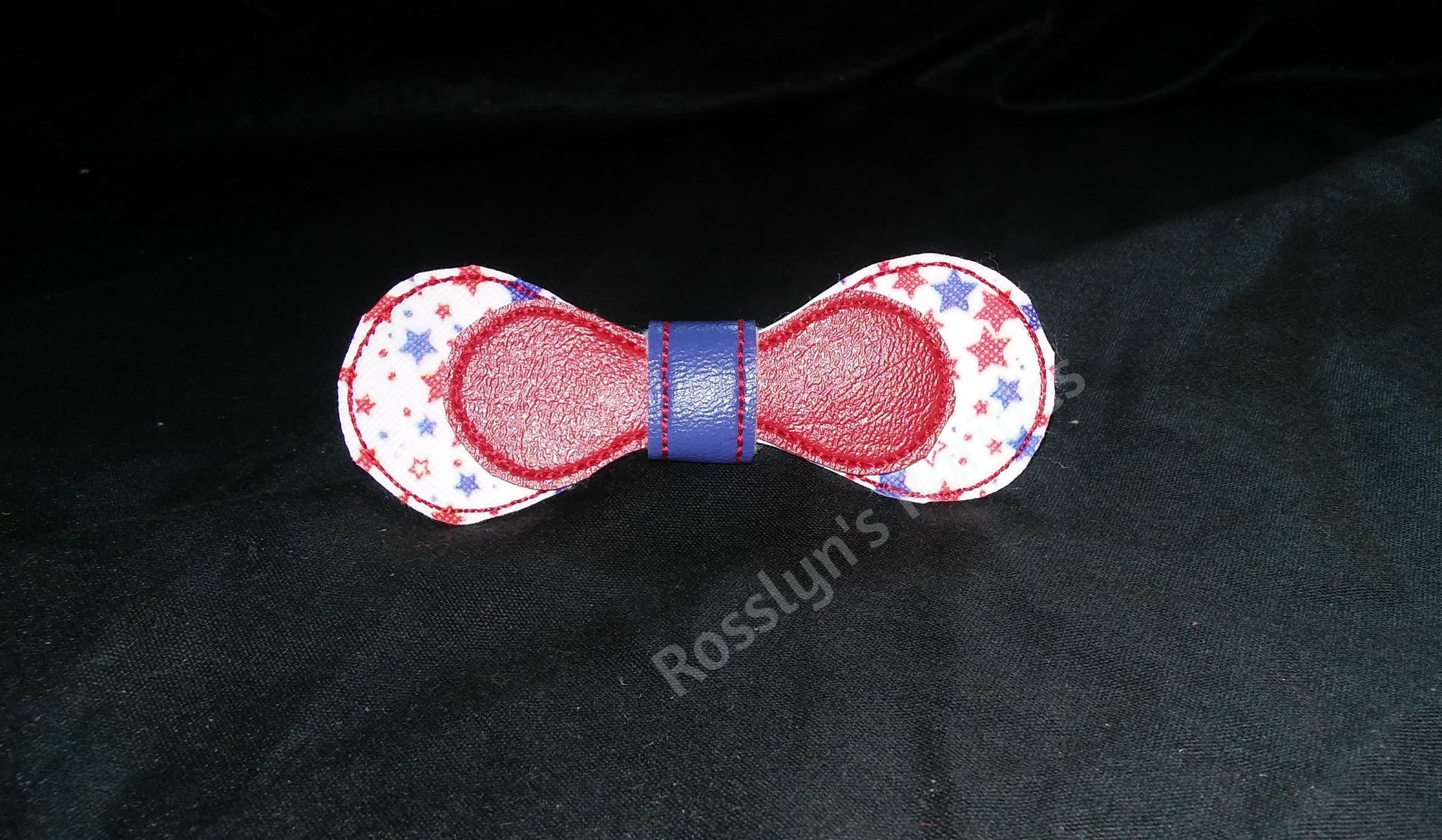 Red, White and Blue Stars Faux Leather Hair Bow with French Barrette.